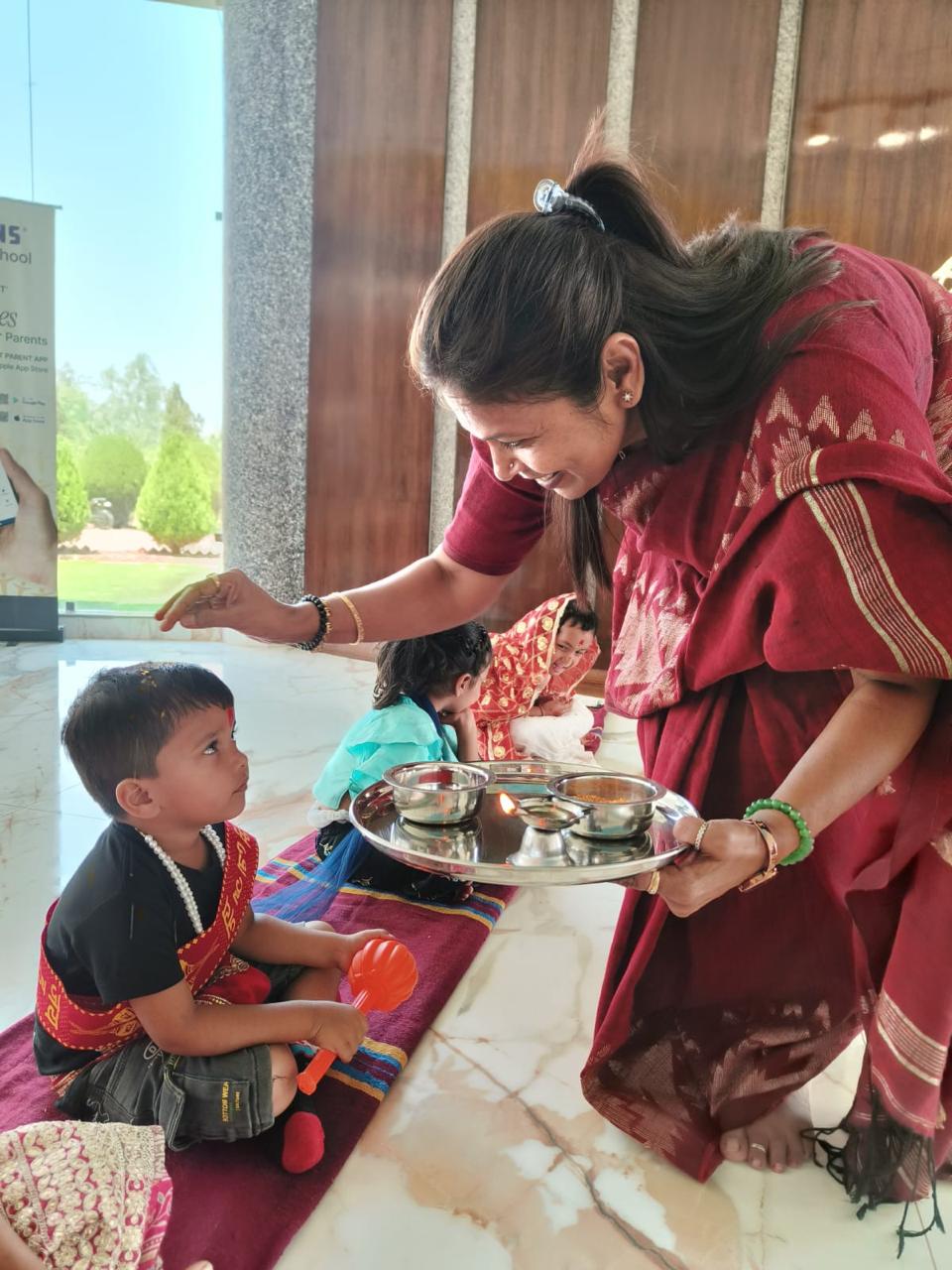 The celebration concluded with a KanyaBhoj, where young girls were respectfully welcomed and served prasad, symbolizing purity and reverence. The day’s events fostered devotion, creativity, and cultural pride among students and staff alike.